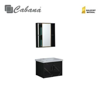 MIRROR L450xH600mm SHELF L450xW120xH40mm CB66SS BASIN COLD TAP (S/Steel 304) CB230SS POP UP WASTE 80mm With Overflow (S/Steel Chrome) BASIN CABINET Black L600xW470xH400mm